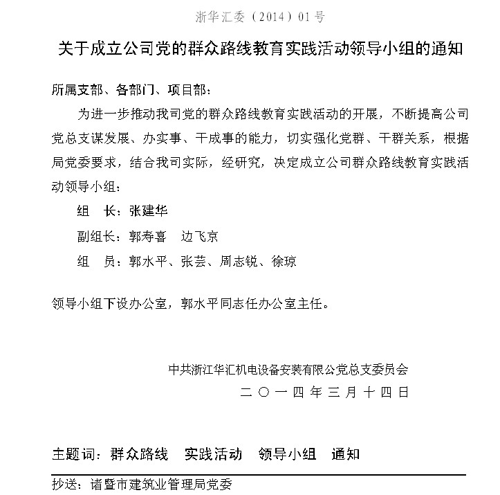 关于成立公司党的群众路线教育实践活动领导小组的通知